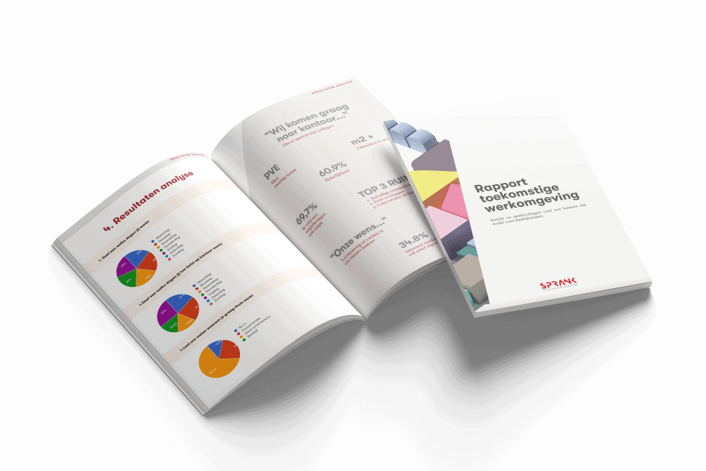 Met de Sprank analysetool deel je binnen 15 minuten je wensen en voorkeuren over de werkomgeving. Elk teamlid vult de vragenlijst individueel in, zodat we een compleet beeld krijgen van jullie behoeften: van concentratie en samenwerking tot ontmoetingsplekken en ruimtegebruik. Zodra iedereen de tool heeft ingevuld, vertalen wij de resultaten naar een helder rapport en een Programma van Eisen (PvE) dat laat zien waar jullie team écht behoefte aan heeft.